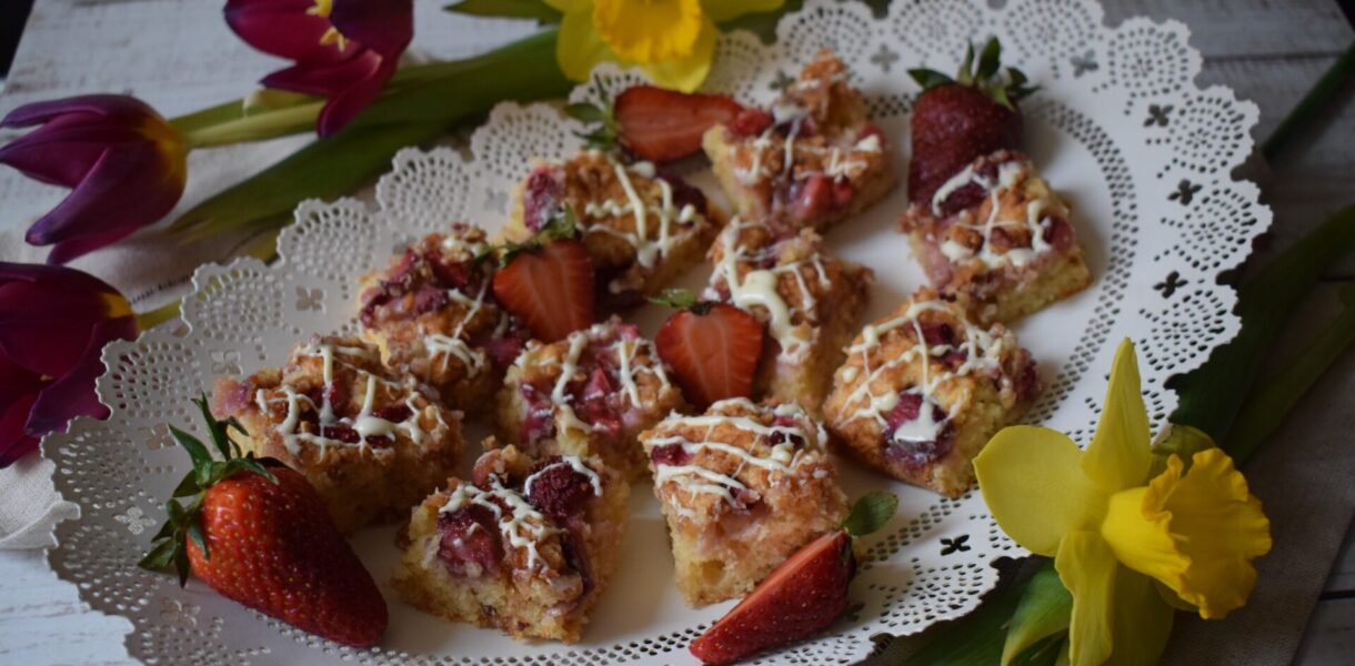 Jó kis epres süti kerekedett, szinte random módon. A liszt felét mandulalisztre cseréltem és a mandula a tetején is megjelenik ropogós-crunchy-formában. Kevés eper jön rá, még túl drága az eper, …