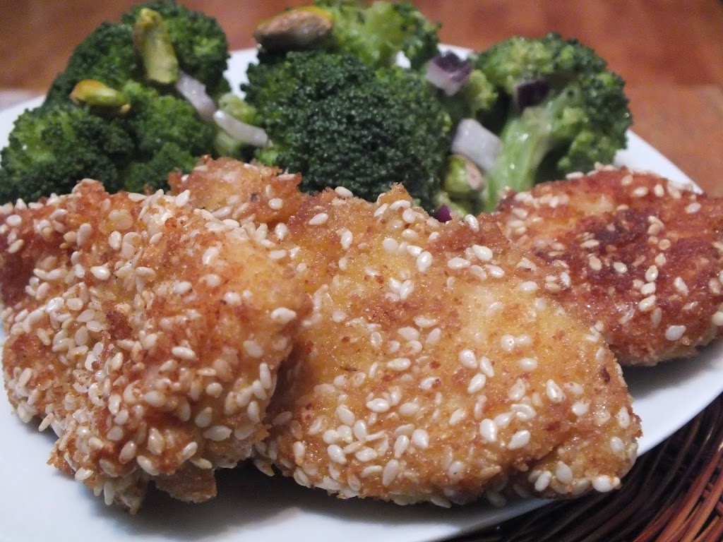 A panírozott csirkefalatok általában a gyerekek kedvencei, na meg a party szervezőké. Én, bevallom, nem látok sok fantáziát benne, a panírozási mizériáról nem is beszélve. Ezért jó ötlet a szezámmag, szerintem sokkal finomabb így.