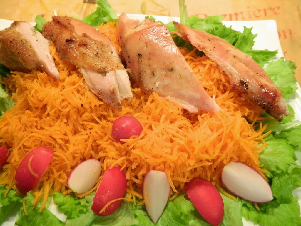 Fokhagymás csirkemell nyers sárgarépa salátával