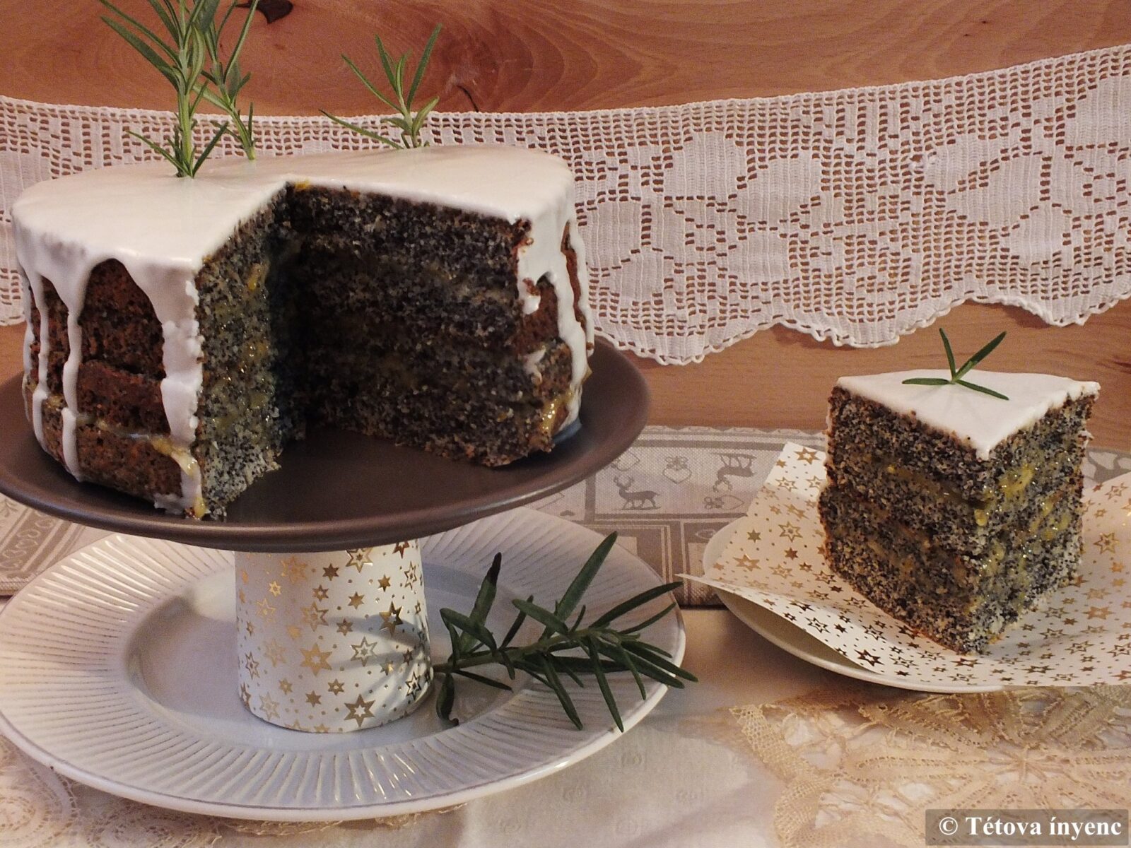 Egy egyszerű, havas tájat idéző tortát készítettem, hátha a tél is megrázza magát láttán. Tulajdonképpen két régebbi receptemet kombináltam össze: az alap egy mákos-áfonyás sütemény (most áfonya nélkül), a krém pedig a klasszikus angol lemon curd. A külsőhöz inspirációt innen kaptam. Harmonikus ízvilág kerekedett ki belőle, karácsonyra, szilveszterre bárki elkészítheti.