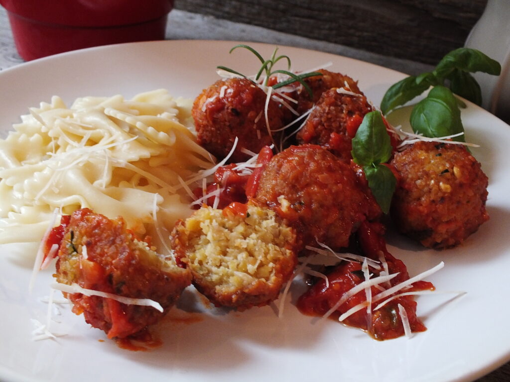 Ránézésre húsgombócoknak tűnnek, pedig teljesen húsmentesek. Böjtben jól jönnek az ilyen receptek. Én vegetáriánus barátainknak készítettem, és bár volt húsos változat is, szívesebben ettem ezt.