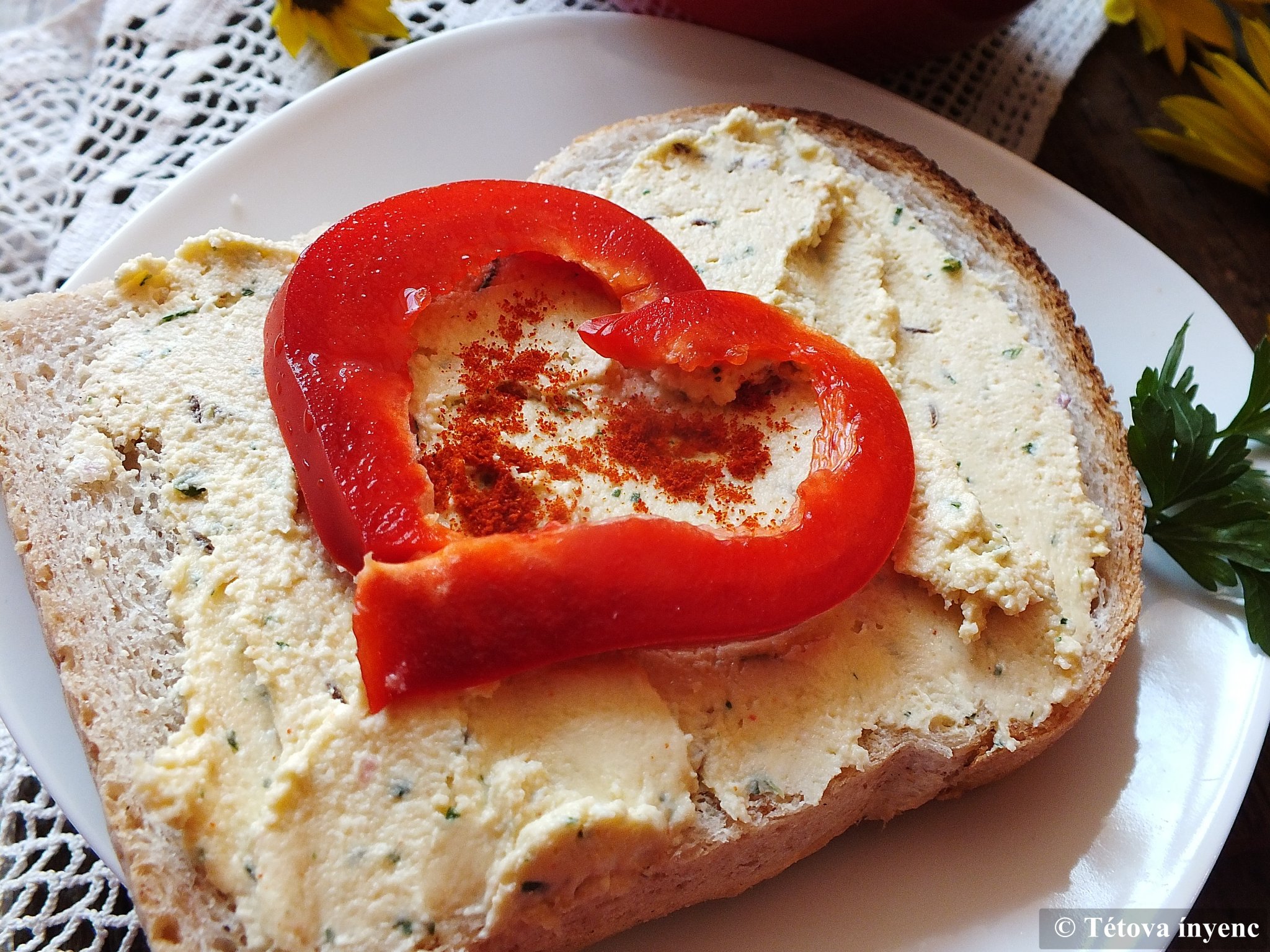 És hogy mi mennyire szeretjük a körözöttet, arra jó példa a fotó. Mire a tettek mezejére léptem volna, valaki már megdézsmálta a finom kencét.