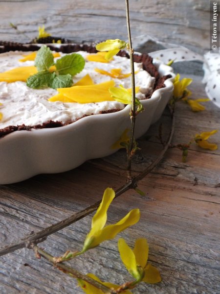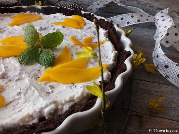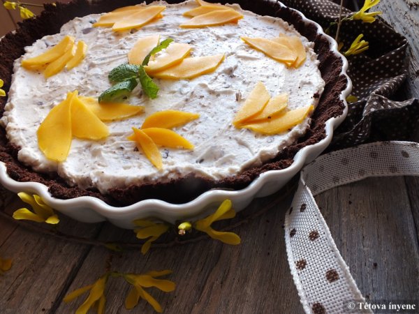 A mangó is ötletszerűen került a pite tetejére. Ha most készíteném, epret tennék rá.