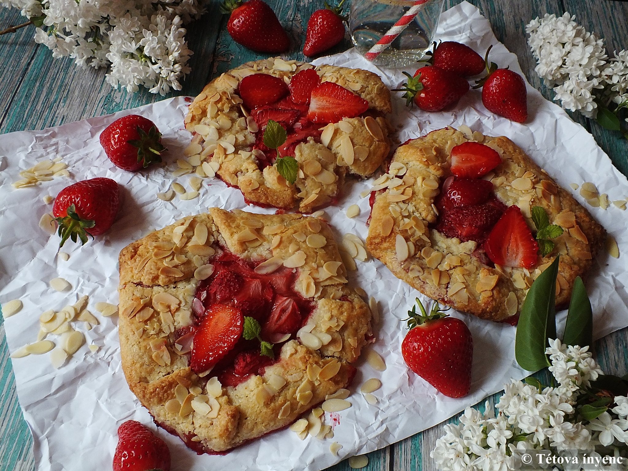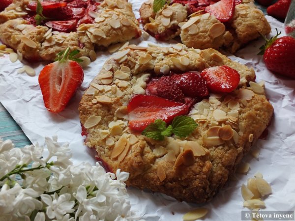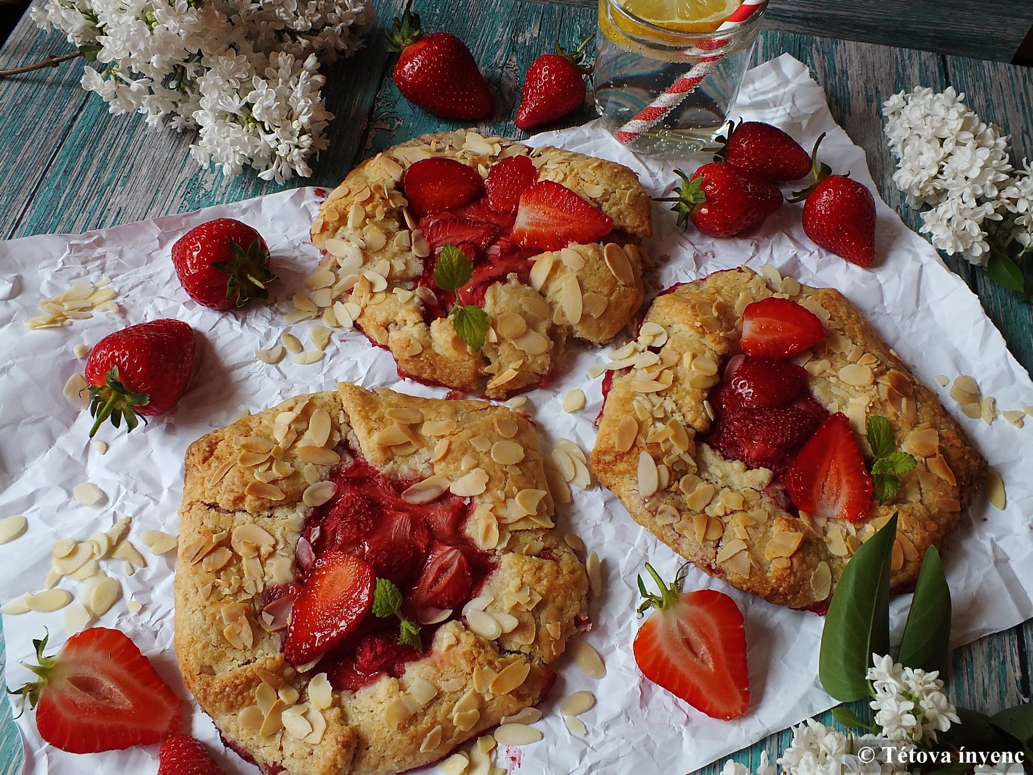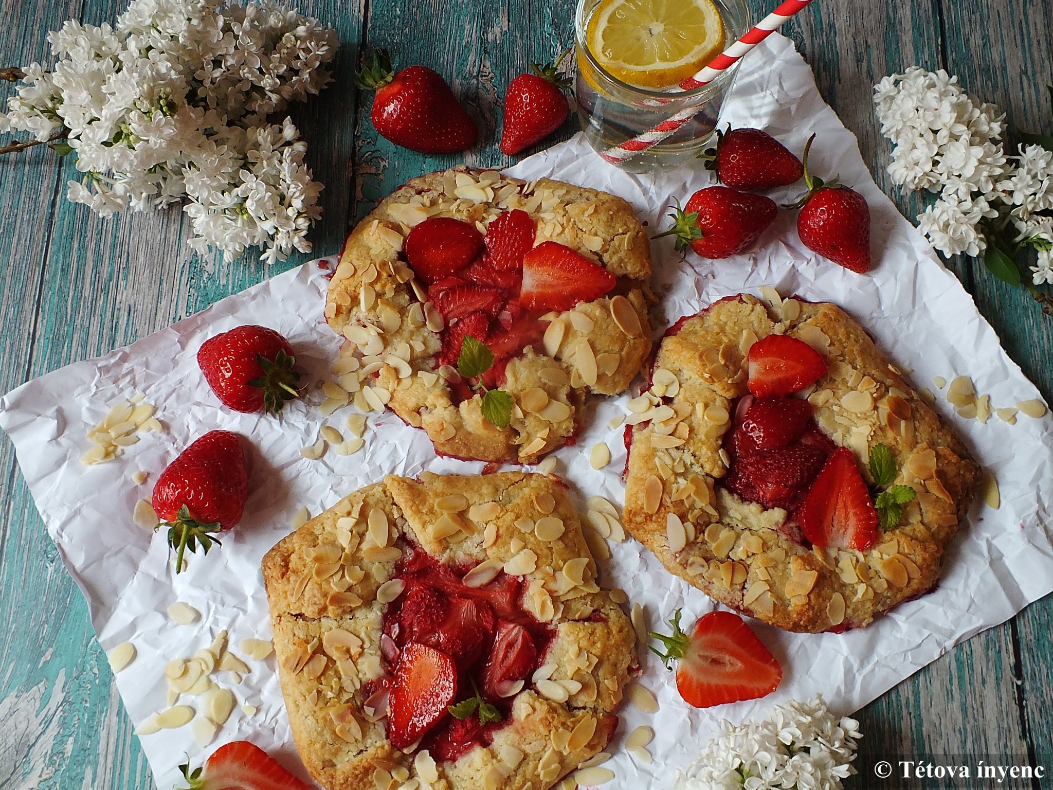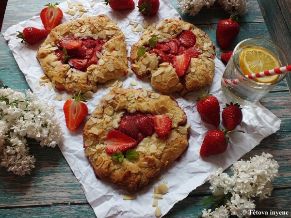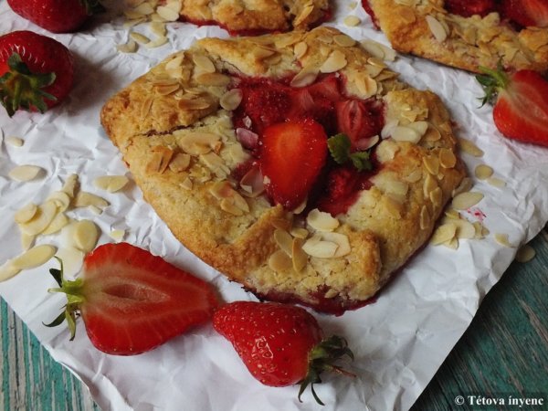 Lassan minden gyümölccsel kipróbálom a galette-t. Az áfonyás változat után itt az epres, amelyet kevés mandulával tettem különlegesebbé.
