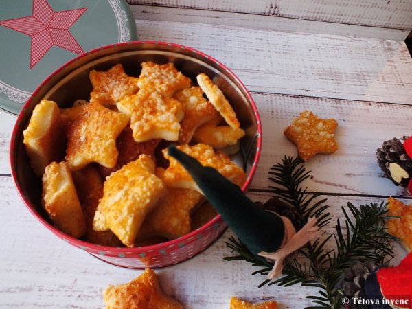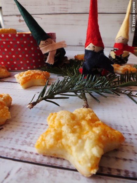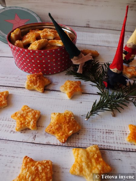 A szüleimnél töltöttük az ünnepeket, úgyis rég el akartam készíteni édesanyám juhsajtos rágcsáit. Gyerekkorom egyik kedvenc süteménye. Édesanyám különböző formákkal vágta ki a tésztát, a kieső tésztarészeket pedig már nem lehetett összegyúrni, így azonmód megsütöttük. Ezek a szörnyecskék voltak a kedvenceim.