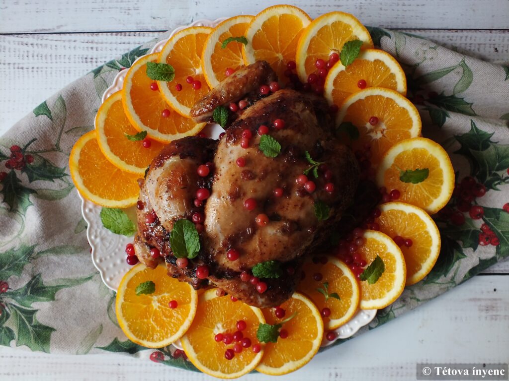 A 7. helyre két recept is pályázott azonos pontszámmal. A narancsos-vörösáfonyás sült csirkére büszke vagyok. Finom és szépséges. Sikerült téliesíteni és ünnepivé tenni az amúgy egyszerű csirkehúst.