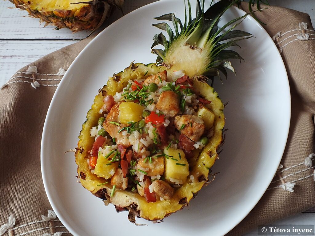 A 10. befutó az ananászos csirkesaláta lett. Ez egy gazdag saláta, amelyet az ananász héjában tálalunk. Látványos és laktató, az ünnepi asztalon is megállja a helyét.