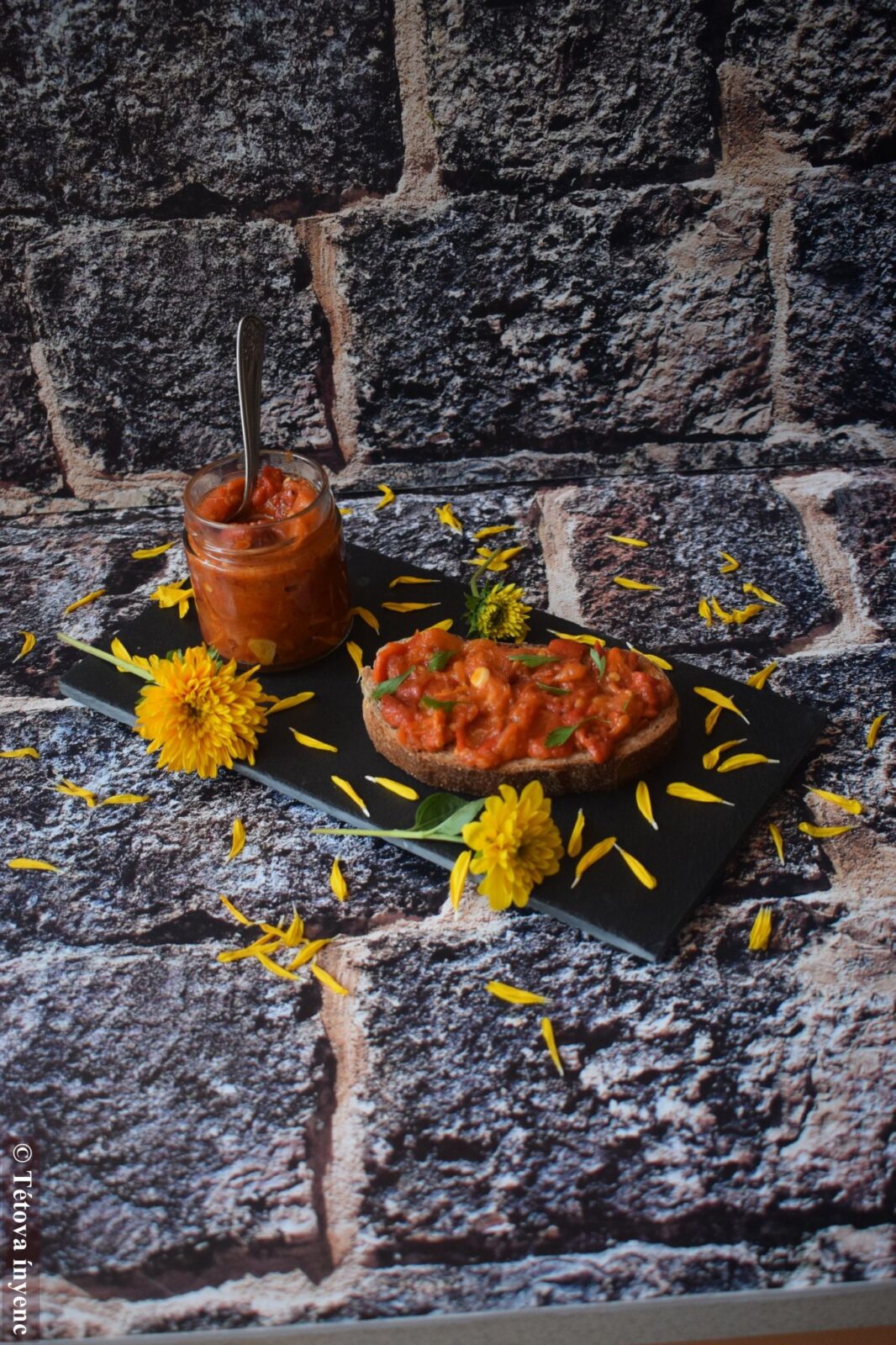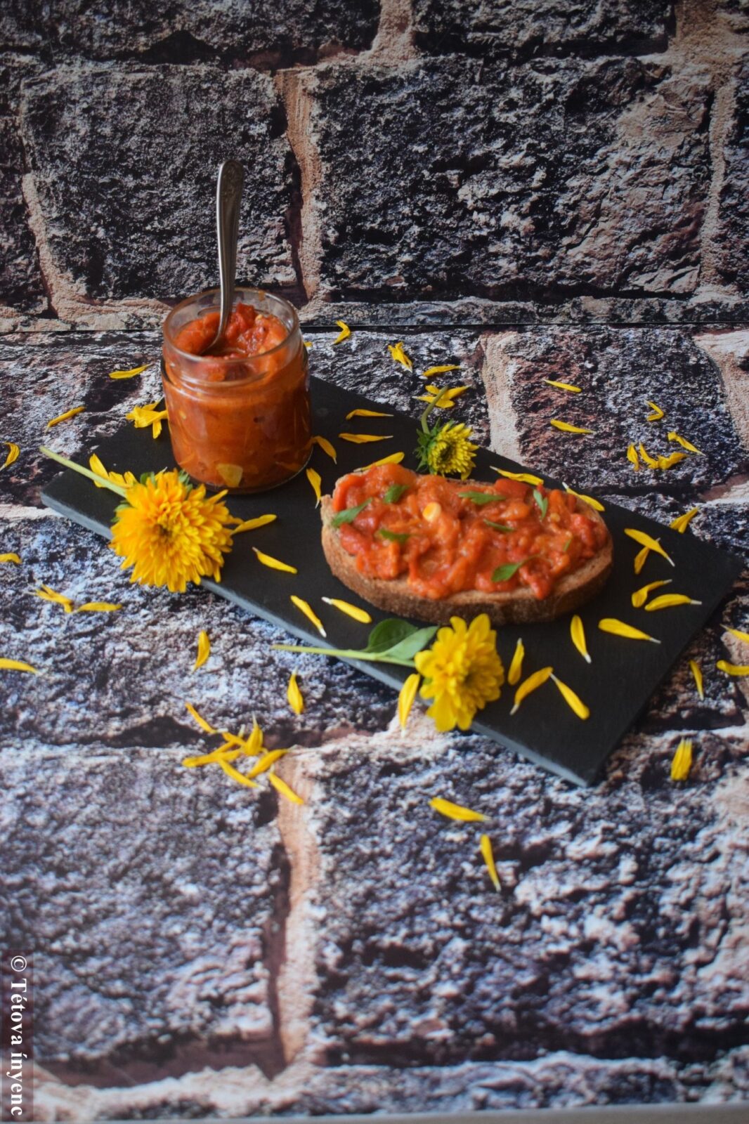 - Ráteszem a kockára vágott paradicsomot, a fűszereket, az apróra vágott csípős paprikát és addig kavargatom, amíg a levét elfövi.