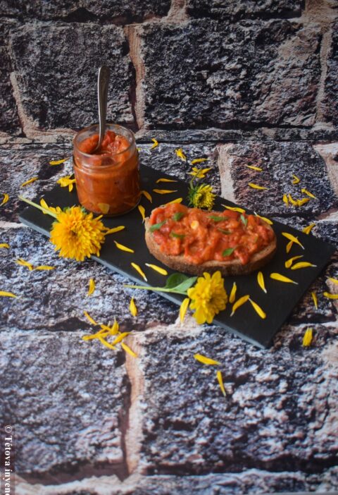 Ajvár, zakuszka, ljutenica-ezerféle recept van és a határvonalak gyakran elmosódnak. Én most egy egyszerűbb, kissé pikáns változatot mutatok be. A hozzávalókat most csak daraboltam, de késes aprítóban krémesre is kavarható.