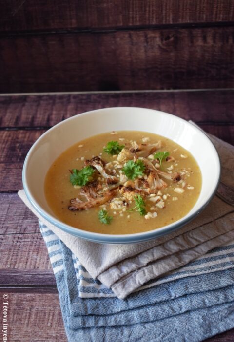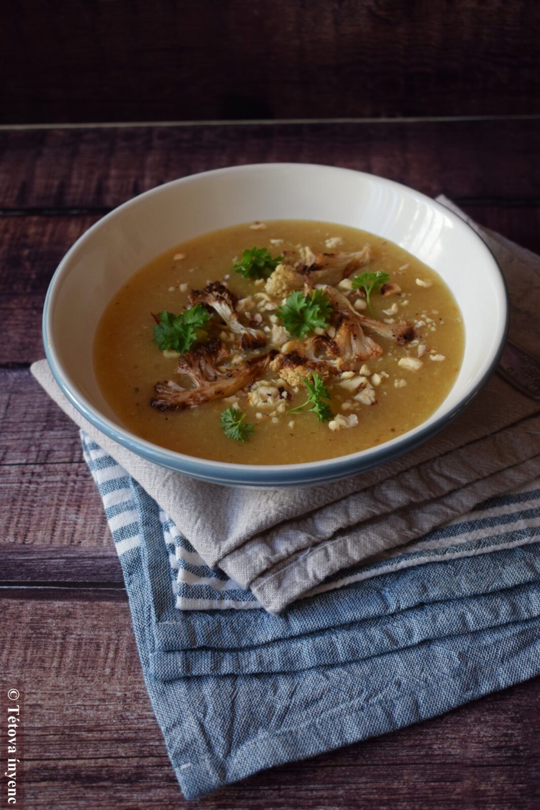 A karfiolleves és  a karfiolkrémleves ízét mindenki ismeri. Na, a sült karfiolleves íze nem olyan. Teljesen más. Köretként is szeretem, de önállóan, levesként is megállja  a helyét. Talál hozzá a mogyoró, de a dió, vagy a mandula, pisztácia is.
