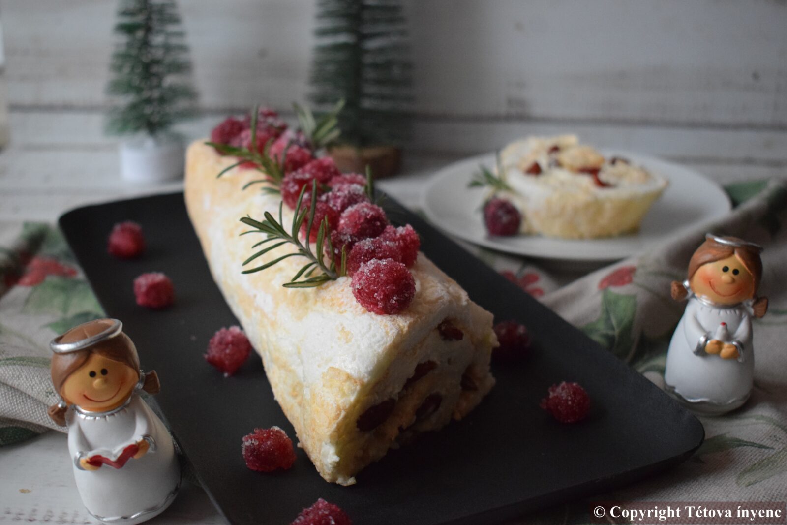 Ez a pavlova rolád is a semmiből született, és ami volt itthon, azzal díszítettem: a kamrában régóta csücsülő, ajándékba kapott mézes goji bogyóval. Na és nagyszemű vörös áfonyával, amihez friss formájában most jutottam hozzá életemben először.