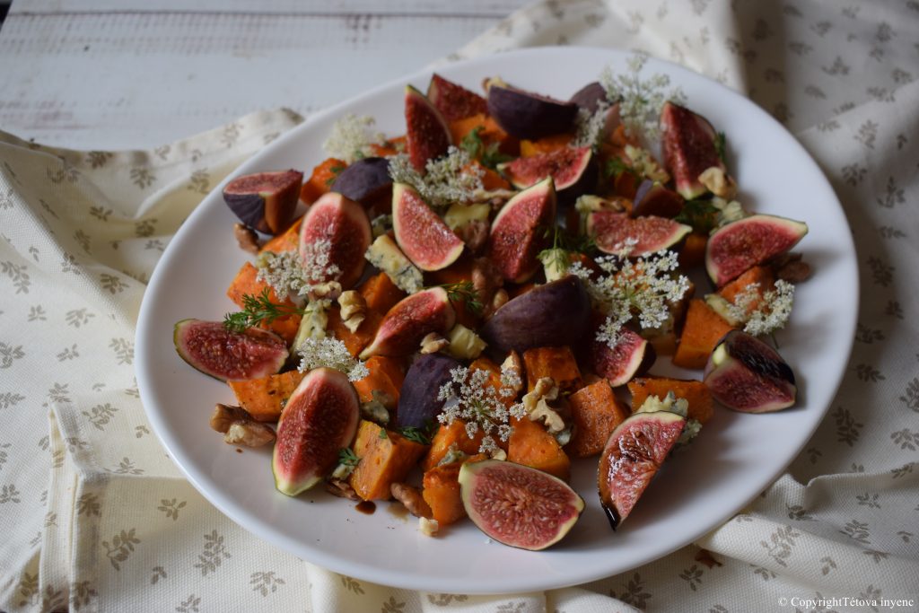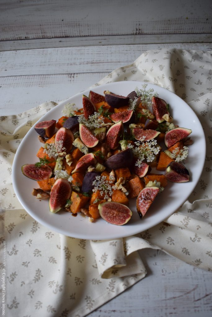 Most saláta-ötletem támadt. Volt itthon füge-füge szezonban nem tudok ellenállni, mindig veszek pár szemet. Volt itthon kéksajt-stilton, ezt ritkábban lehet kapni, de más fajta is jó hozzá.