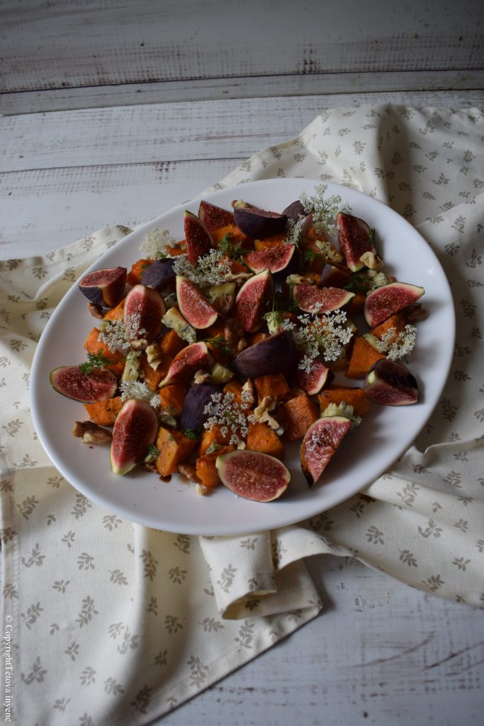 - Összeállítom a salátát: egy lapos, nagyobb tányérra kerül az édesburgonya.