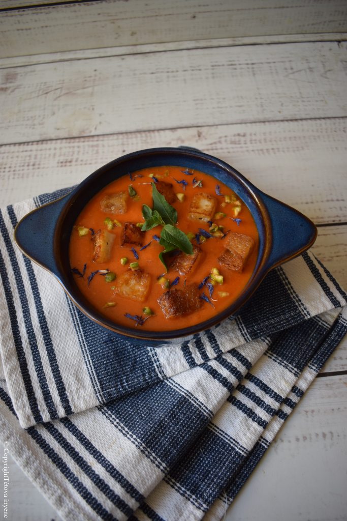 S-ahogy már kifejtettem máskor is-a felületük olyan, mint egy festő palettája. Bármivel díszíthetem. Van, amikor csak sült kenyérkocka kerül rá. Mást volt itthon halloumi, pisztácia, katángvirág, menta. Izgalmas ízvilágok és textúrák. S még a szemünknek is tetszetős.