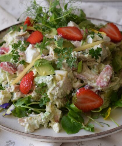 The idea for this salad came from a leftover roasted chicken breast. And, of course, the chervil I was lucky enough to find. I used whatever I had at home: …