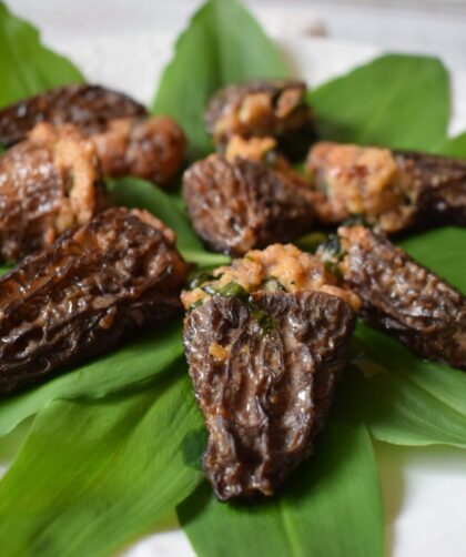 I brought a spring delicacy from the forest. Both ingredients – morels and wild garlic – are very much in season right now, although the April snow might set back …