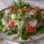 - Add the chopped wild garlic, then the quail egg, sour cream, cheese, and breadcrumbs.